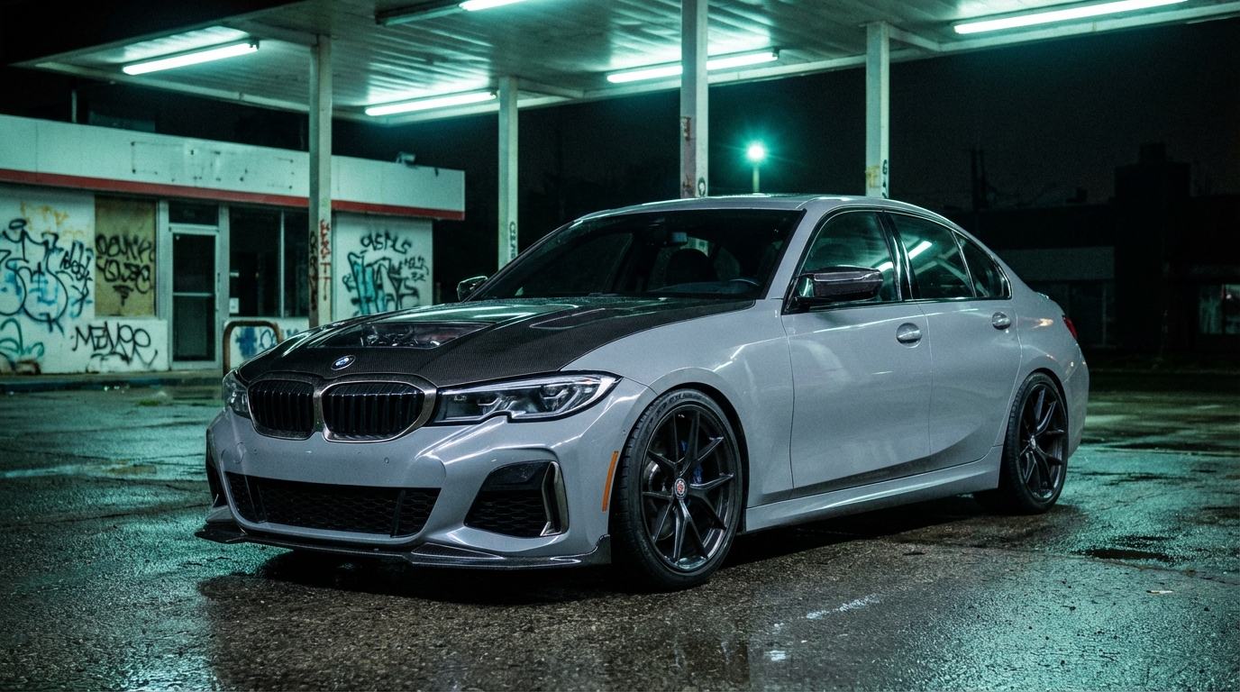 20インチも履けないことはないよ。フロント8.5J +30〜+35、リア9.5J +40〜+45あたりが目安かな。タイヤはフロント225/35R20、リア255/30R20といったところ。ただ、20インチだと扁平率がかなり低くなるから、乗り心地は確実に硬くなるし、タイヤの「ロードインデックス(LI)」が不足しないか必ず確認する必要がある。G20の車両重量を考えると、LI不足は安全性に直結するからね。それに、ミリ単位で攻めると、個体差やアライメントの「キャンバー角」のわずかな違いでフェンダーの耳やインナーライナーに干渉するリスクが跳ね上がる。