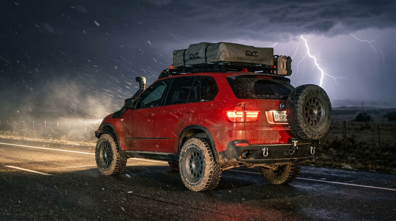 趣味でキャンプによく行くというKentaさんは、X5 E70の足元をもう少しアグレッシブに見せたいと、ワイルドなトレッドパターンのATタイヤを装着することにしました。しかし、見た目と価格重視で選んだ結果、本来必要とされるロードインデックス(LI)を満たしていないタイヤを選んでしまいました。X5 E70は車両重量が2トンを超える大型SUVであり、純正タイヤのロードインデックスは『107』が推奨されています。しかしKentaさんが選んだタイヤは『103』。最初は特に問題ないと感じていましたが、長距離の高速走行や、キャンプ道具満載で山道を走行する際、タイヤのたわみが目立つようになりました。さらに、半年も経たないうちにトレッド面にヒビが入り始め、特にサイドウォールが大きく膨らむ症状も現れました。これは、タイヤがX5 E70の重さに耐えきれず、過負荷がかかり続けていた証拠です。最悪の場合、高速走行中にバーストする危険性も孕んでおり、命に関わる事態に発展する可能性がありました。Kentaさんは異変に気づき、慌てて専門店に相談。プロからの指摘でロードインデックスの重要性を痛感し、急遽適切なロードインデックスのタイヤに交換することになりました。
