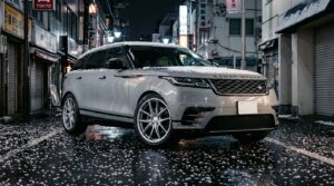 レンジローバースポーツL494のフェンダークリアランスは見た目よりもシビアです。特に22インチ以上の大径ホイールでツライチを狙う場合、純正インセット(約+45mm)から大きく外れる+35mm以下のインセットは非常にリスクが高いと心得てください。エアサスの車高変化に加え、フルバンプ時のサスペンションストローク、さらにリアのキャンバー角の変化による干渉を正確に予測する必要があります。タイヤ銘柄によるショルダー形状の違いや、アライメント調整でトー角やキャンバー角を微調整することで回避できる場合もありますが、安易な攻めは禁物です。必ず専門ショップで実車計測を行い、フェンダークリアランスだけでなく、インナーライナーやサスペンションアームへの干渉リスクも徹底的に確認することが重要です。