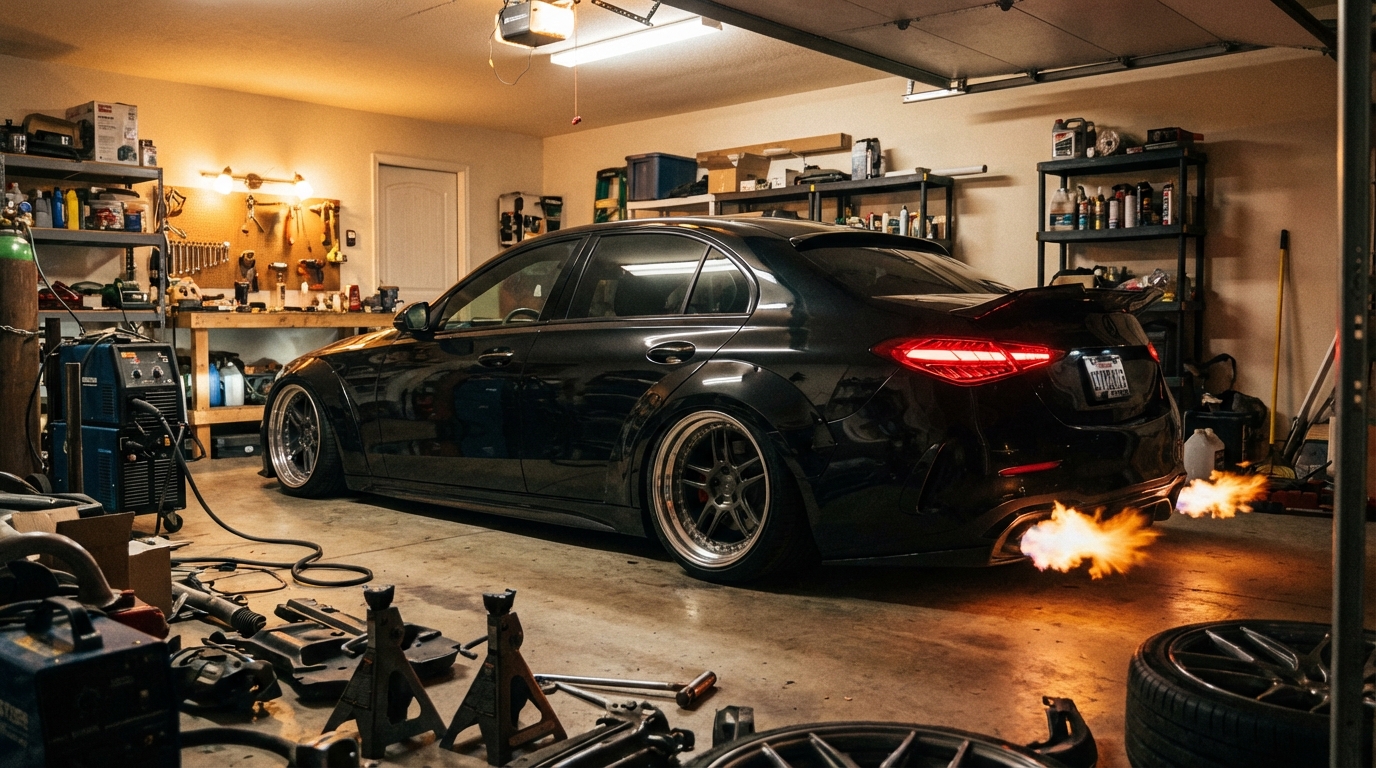 そうですね、W206で一般的なのは、フロント8.5Jでインセット+35、リア9.5Jでインセット+45あたりを狙うと、かなりツライチに近い見た目になります。ただ、フロントはステアリングを大きく切った際にインナーフェンダーに干渉するリスクが、リアはフルバンプ時にフェンダーの耳にタイヤが接触するリスクが常に付きまといます。特にW206のリアフェンダーは形状的にシビアなので、ミリ単位の攻め方が重要ですよ。