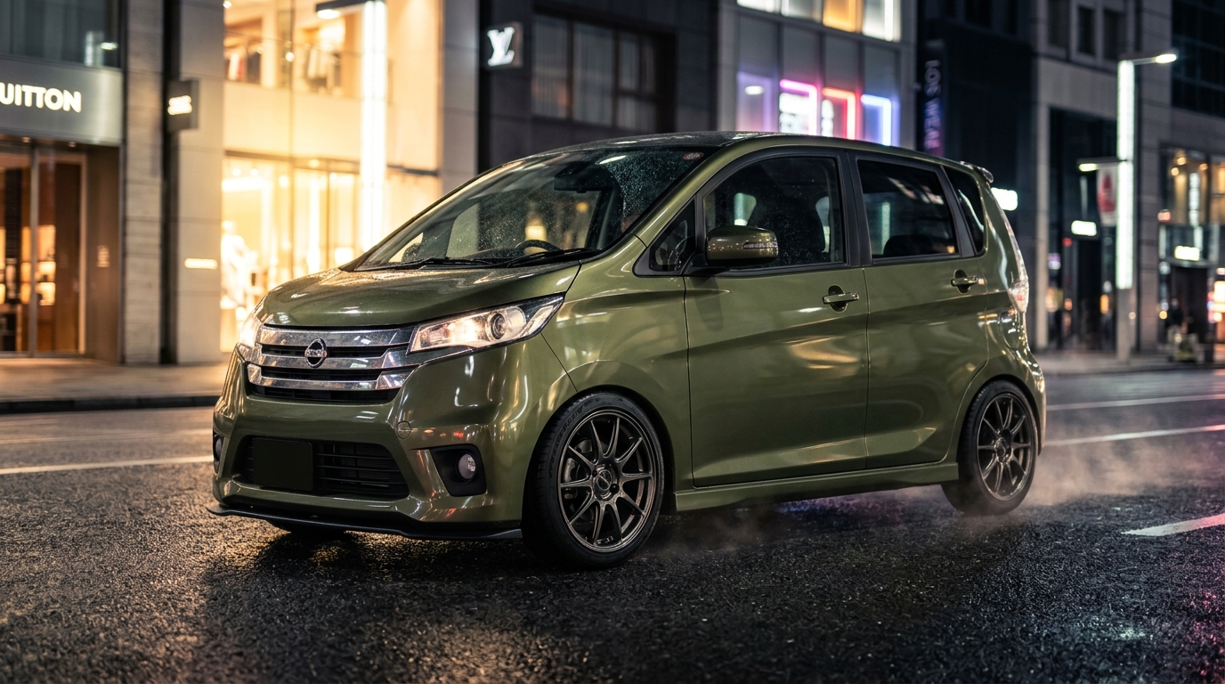 そうだよな。まさにそこが軽自動車のカスタムの肝なんだ。デイズB21Wの場合、純正は155/65R14だろ?これを例えば165/55R15とか165/50R16にするのが一般的だけど、ホイールのインセット選びが超重要になってくるんだ。軽自動車はフェンダークリアランスが本当にシビアだからね。