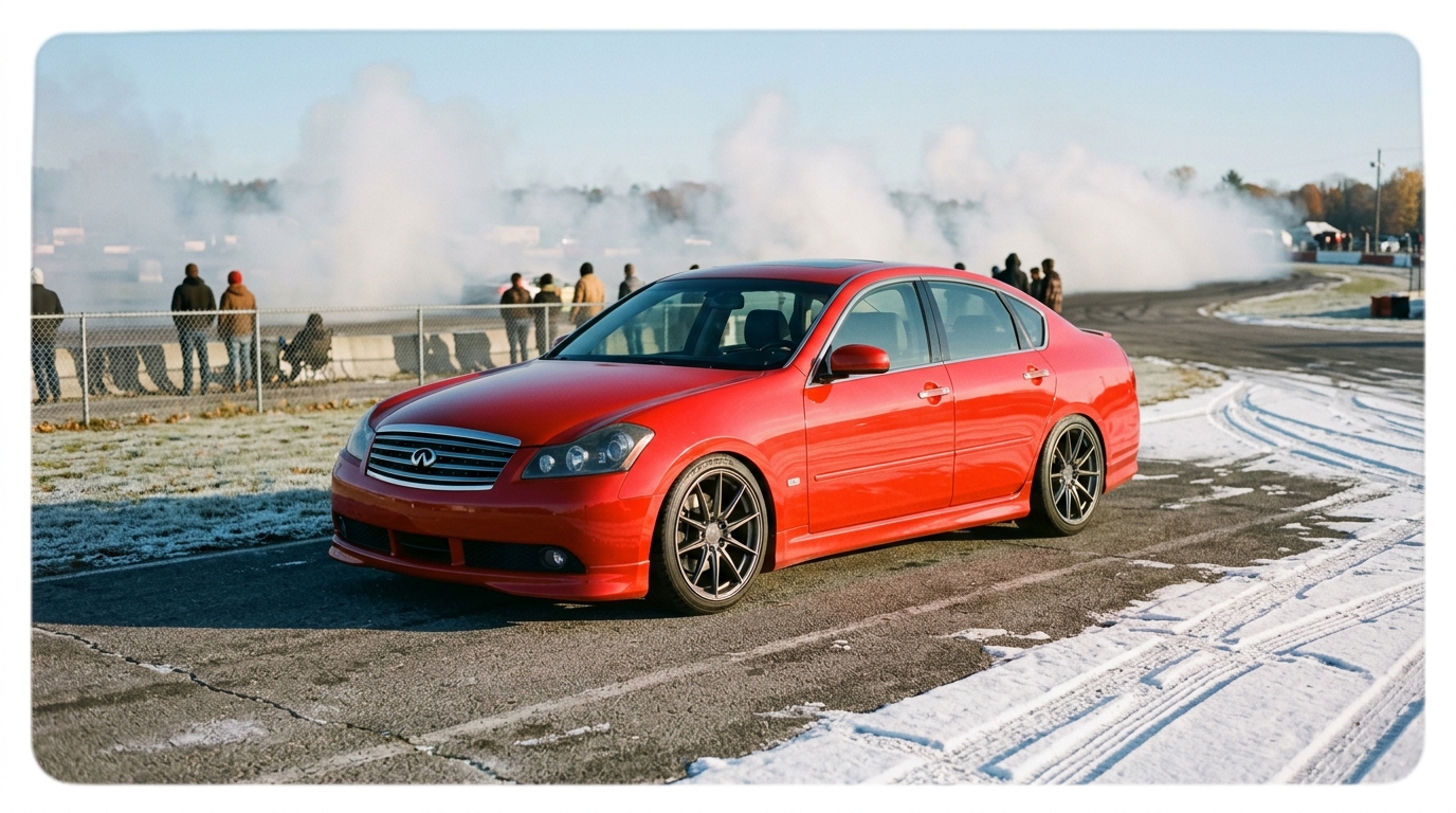 お、kenta君、M35のカスタムかい!いい車を選んだね。ステージアM35はFRベースでV35スカイラインと共通の足回りが多いから、カスタムの幅は広いよ。ただ、ワゴンボディでそこそこ車重があるのと、リアのマルチリンクサスペンションの特性を理解しておかないと、失敗するケースも少なくないんだ。ツライチは魅力的だけど、ただ単純にリム幅とオフセットを大きくすればいいってわけじゃないからね。特にローダウンを考えているなら、さらに慎重な選定が必要になる。