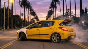 プジョー208(P21)のオーナーであるAさんは、SNSで見た『ツライチ』スタイルに憧れ、中古の深リムホイールを探していました。予算を抑えるため、某オークションサイトで7.5Jのワイドリムにインセット+18mmという、かなり攻めたサイズのホイールを格安で発見。純正の16×6.5Jインセット+25mmと比較すると、リム幅が約25mm広くなり、インセットも7mm外に出るため、計算上は純正から外側に約19.7mmも張り出すことになります。届いたホイールを意気揚々と装着し、見た目には満足。しかし、いざ走り出すと、低速での据え切り時にフロントタイヤがインナーライナーにゴリゴリと干渉。さらに、街中の段差やカーブを曲がる際、特にリアのフェンダーの耳にタイヤのサイドウォールが「ガリガリッ」と擦れる音がするようになりました。この状況が続いた結果、タイヤのサイドウォールには深く削れた跡が残り、フェンダーの塗装も剥がれて無残な状態に。特にプジョー208は、フロントサスペンションのストローク時にタイヤとフェンダーのクリアランスがタイトになりがちで、リアも構造上、キャンバー角が大きく変化しないため、ローダウンなしでの過度なインセット攻めは非常にリスクが高いのです。Aさんはこのダメージを負ったままでは車検も通らず、後悔の念に駆られました。
