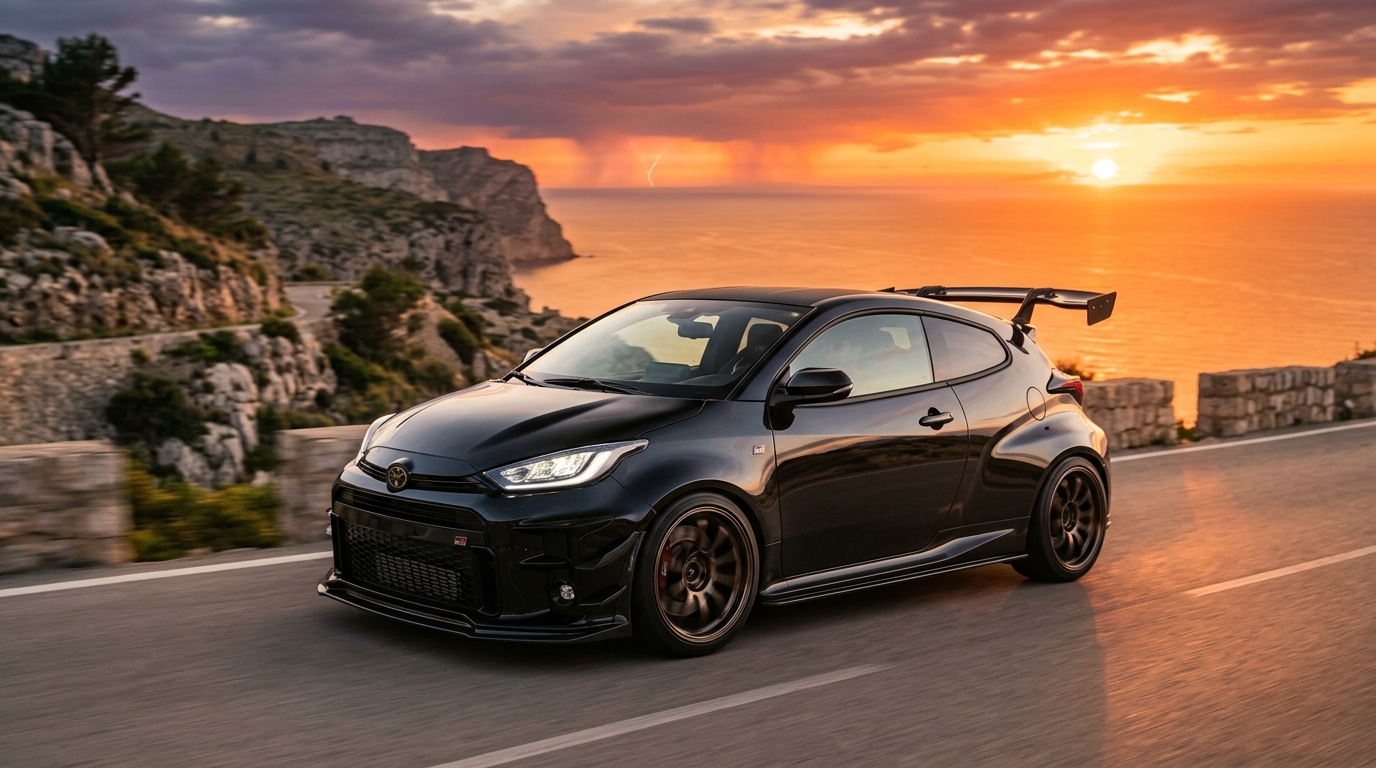 GRヤリスは純正でかなりワイドなトレッドを持つハイパフォーマンスカーだが、ツライチを狙う際は実車での入念な計測が不可欠だ。特に車高を落とす場合は、サスペンションのストローク量とアライメント変化(特にキャンバー角の適正化)を考慮し、最低限のクリアランスを確保する必要がある。単に見た目だけでなく、走行性能と安全性を確保するためのクリアランス(最低でも5mm以上推奨)を確保し、干渉リスクを最小限に抑えるインセット選びが重要。トー角の適正化も直進安定性やタイヤの偏摩耗防止に大きく寄与するため、ローダウン後は必ず専門ショップでのアライメント調整を実施すること。