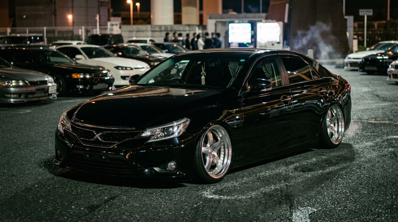 うーん、そこは要注意だ。マークXは前後マルチリンクサスペンションで、サスペンション形式が複雑だからな。安易にワイドトレッドスペーサー(通称ワイスペ)を入れると、アームとの干渉や、バンプ時にフェンダーリップにタイヤが当たるといったトラブルを招く可能性が高い。特にリアは、ローダウンするとキャンバー角が寝る方向に行くが、それでもフェンダーとのクリアランスは想像以上にシビアだ。ワイスペで外に出しすぎると、サスペンションアッパーアームとインナーフェンダーのクリアランスが極端に狭まって、最悪、アームにタイヤが接触するなんてケースもある。入れるなら信頼できるメーカー製で、ハブボルトへの負担も考慮しつつ、専門店でアライメントを含めて相談しながら慎重に選ぶ必要があるぞ。ハブ一体型のスペーサーで、ハブ径もきっちり合わせたものじゃないと、芯ブレの原因にもなるからな。
